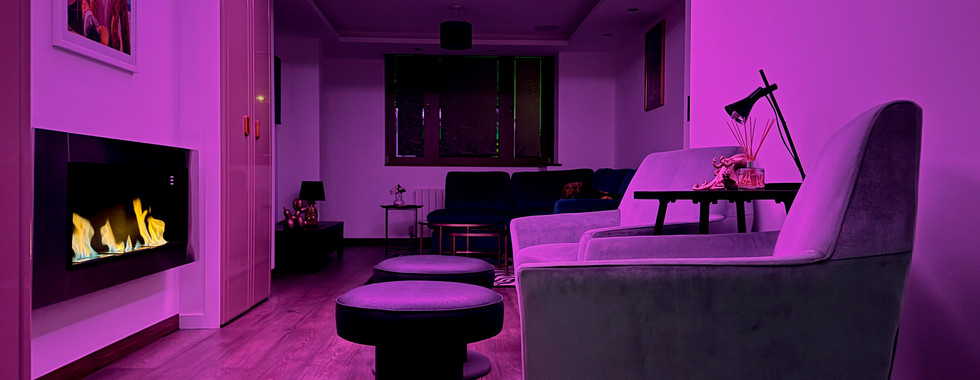 ✅ Reading area - Finally we’ve added something really special to this place! Two super-comfortable silver velvet armchairs in front of a Bio-ethanol fireplace. Perfect spot to relax and read your favourite book (or our blog posts 😉)